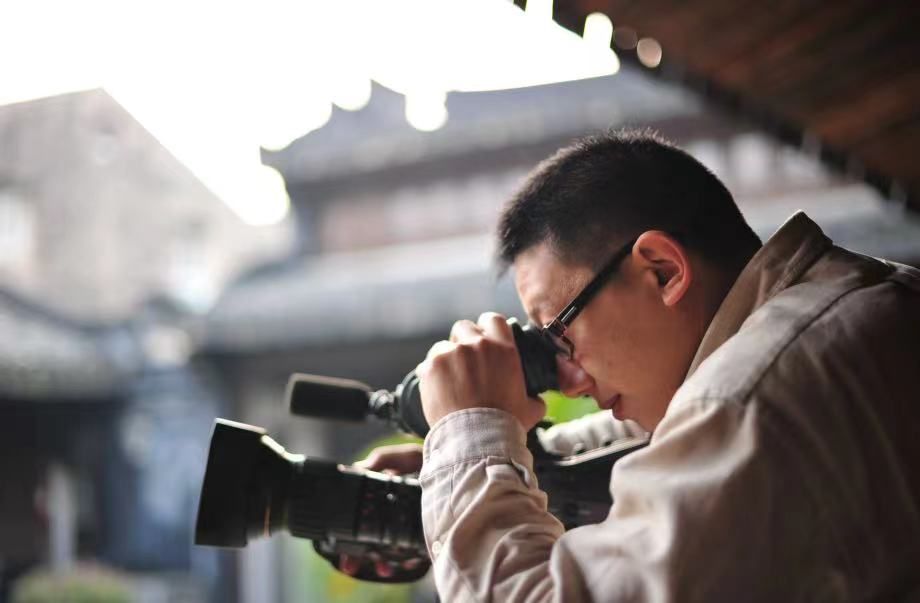 △正在拍摄中的陈振洲