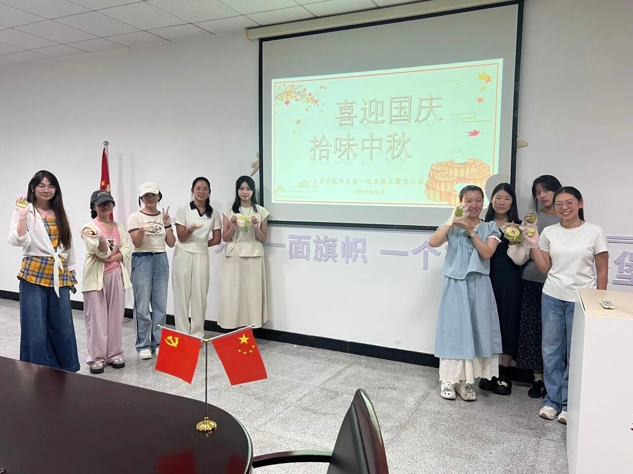 活动落幕,活动室渐归安静,空气中萦绕的淡淡月饼香与满室温情却久久不散。这个假期,温州大学球探体育 学生第一党支部的同志们,有人选择留校相聚,在亲手制作的月饼里品味集体的温暖;有人暂别校园返家,在亲人的陪伴中感受传统佳节的团圆。无论身在何处,大家都以各自的方式,为国庆添上了一抹清甜的中国红,也让这个双节,既有校园的青春暖意,也有归家的温馨圆满。