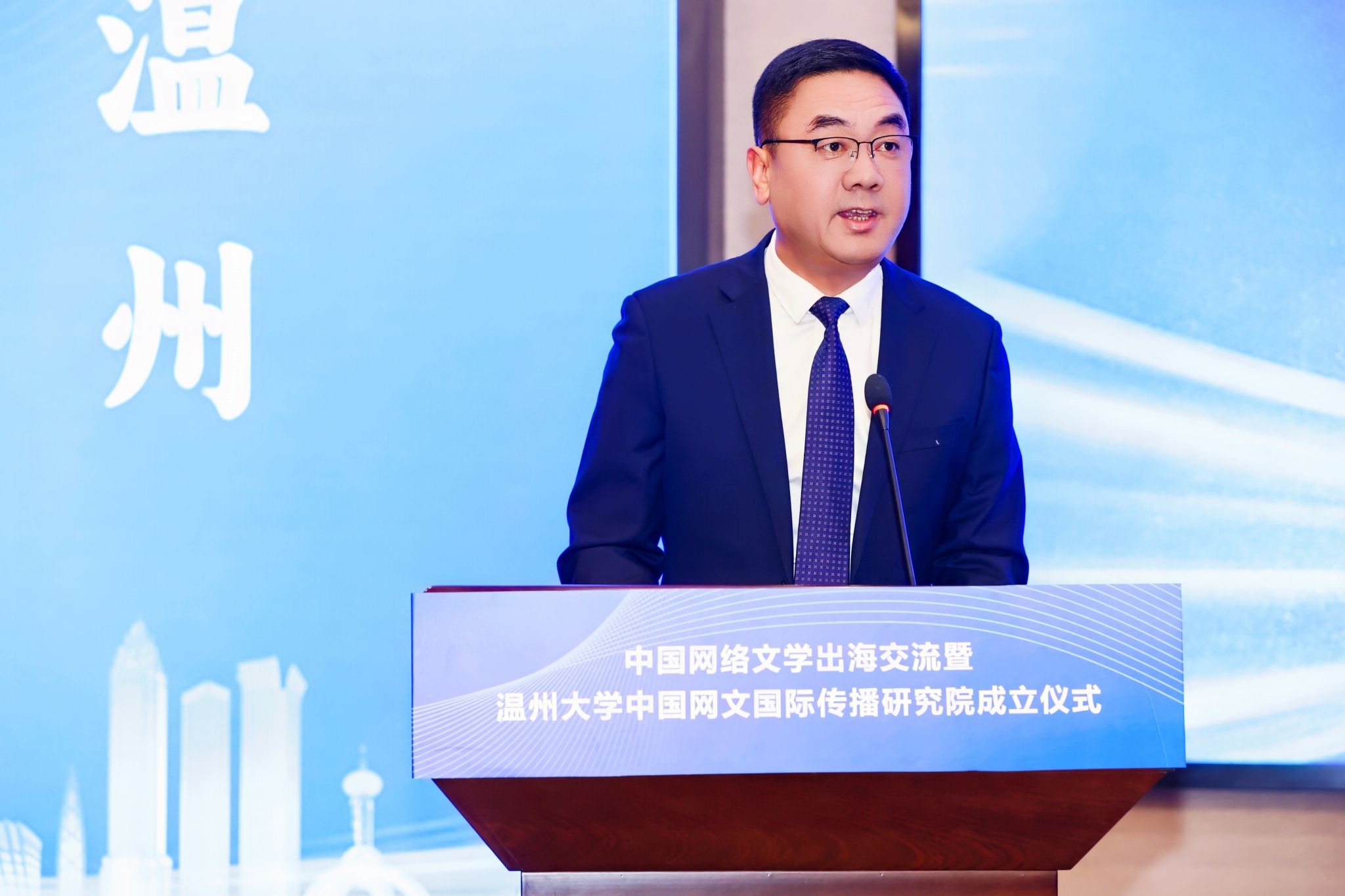 活动由中国作家协会、浙江省作家协会指导,温州市委宣传部与温州大学联合主办,旨在搭建高水平协作平台,全力推动网络文学成为讲好中国故事、传播中国声音的重要载体。活动现场,中国作协党组成员、书记处书记胡邦胜、浙江省作协党组书记叶彤、温州市委常委、宣传部部长王彩莲、温州大学党委书记钱强等领导出席活动并共同见证中国网络文学交流中心的落地与研究院的成立。作为国家文化战略的重要践行者,温州大学始终以服务国家战略和地方发展为己任。早在2019年便前瞻布局,成立网络文创研究院,聚焦网络文学创作生态、产业发展与理论研究,集聚了一批高层次人才与青年学者,逐步构建起涵盖创作引导、学术研究、人才培养的协同体系。此次中国网文国际传播研究院的成立彰显出温州大学在网络文学领域的学术实力与引领潜力。