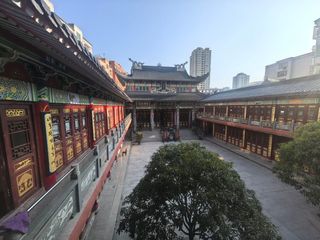 下午,调研组首先就龙港的几条主干路开展实地考察,随后走访七河社区、涂厂社区、新渡社区深入基层一线了解地名文化传承现状。在新都社区,调研组重点参观了龙港孔庙。该孔庙坐落于新渡村,村内70%以上村民为孔氏后裔,是浙南孔氏聚居核心区。其渊源可追溯至明代正德年间(1507年),孔子第61代嫡孙孔宏爱公自温州四甲迁居新渡,奠定孔氏聚居与家庙根基,至今已有500余年历史。孔庙为三进宫殿式建筑群,占地面积2682平方米。大殿两侧120米文化回廊陈列孔氏家训、儒家典故。2012年,龙港孔庙被中国孔庙保护协会吸纳为会员单位。这里集孔子学堂、文化礼堂、道德讲坛、孔子家风家训馆于一体,每年9月28日(孔子诞辰)举办祭孔大典,常年开设公益国学班、古琴班,展示孔子生平与孔氏迁徙史,是浙南地区儒学文化传承的重要场所。调研组在此地探寻孔氏家族迁徙与繁衍的历史印记,挖掘地名与宗族文化的关联。